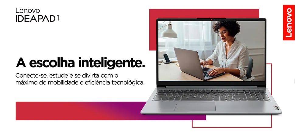 O IdeaPad 1i Gen 7 (15" Intel) é exatamente o que você precisa em um Notebook de uso diário. Assista a programas em uma tela HD de 15,6" com uma moldura extremamente fina. Ouça áudio rico e nítido de dois alto-falantes Dolby Audio™. E com uma bateria poderosa que carrega super rápido, você pode trabalhar de qualquer lugar enquanto desfruta de videochamadas nítidas com cancelamento de ruído inteligente.